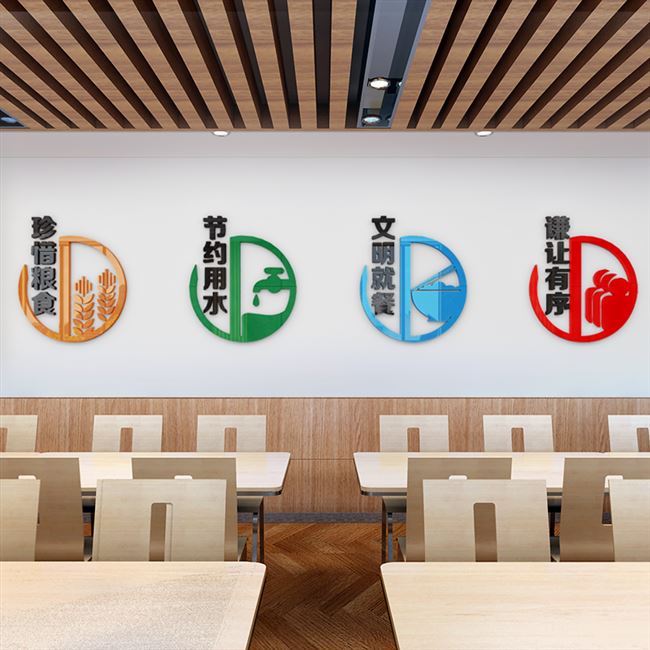 食堂文化墙贴自粘标语文明用餐文字立体贴画节约粮食饭店墙面装饰热门设计联盟服务商