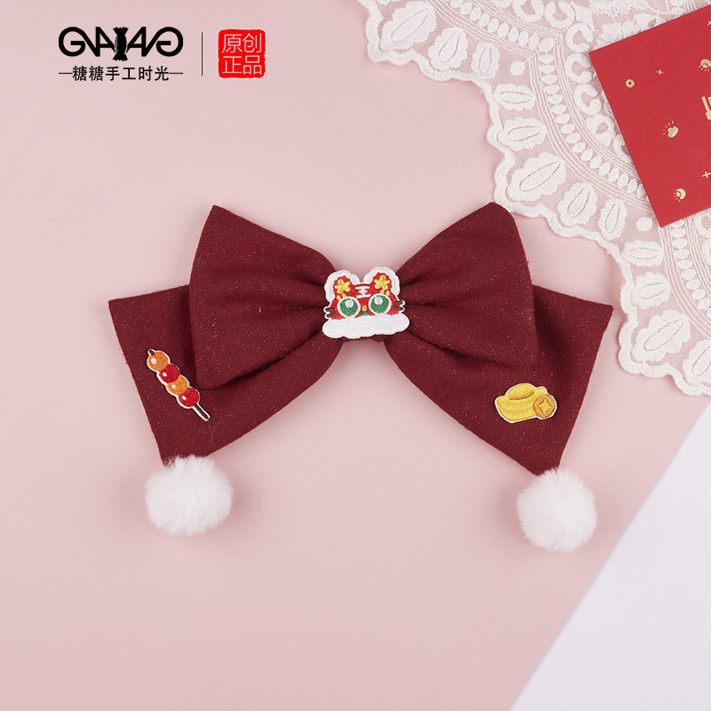 原创设计新年大蝴蝶结发夹年服虎头发饰顶夹酒红洛丽塔发卡发箍热门设计联盟服务商